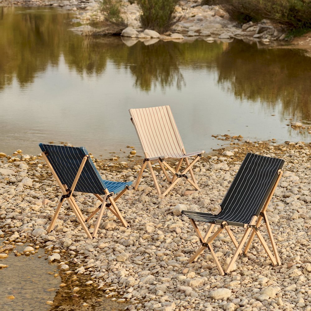 Dotée d’une structure légère en hêtre et d’une assise rayée en polyester recyclé, elle se plie et se transporte facilement, vous offrant ainsi la liberté de vous relaxer où bon vous semble en plein air.